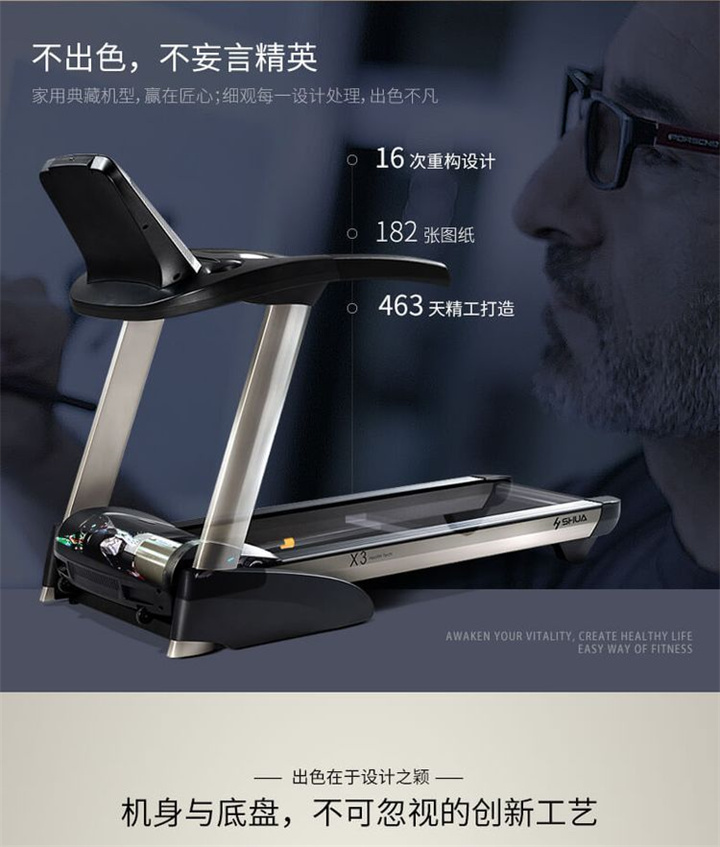 舒華家用跑步機SH-T6700(X6)采用18T+12T雙層跑板,T2.2mm鉆石紋的跑帶,雙層跑板全跑臺減震,對您跑步中的膝蓋進(jìn)行全方位的呵護,選用接觸式心率感應和無(wú)線(xiàn)心率感應等多種方式獲取數據,跑步面積達520×1450mm,可承受130kg的使用者使用。