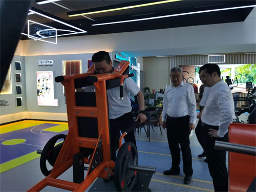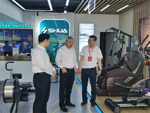 VSPORTS体育官网體育集團董事長(cháng)王進(jìn)華先生向王映海副市長(cháng)一行領(lǐng)導介紹了近年來(lái)企業(yè)發(fā)展情況,并帶領(lǐng)大家參觀(guān)了VSPORTS体育官网體育集團濟南省體旗艦店,詳細介紹了無(wú)氧力量、心肺有氧、戶(hù)外綜合、私家健身、老年健身、康體器材六大健身場(chǎng)景區域,王進(jìn)華先生還親身示范健身器材的正確使用方法,全場(chǎng)景體驗和具有科感的智能互動(dòng)得到一行領(lǐng)導的充分肯定與認可,并對VSPORTS体育官网體育集團在體育產(chǎn)業(yè)發(fā)展中發(fā)揮的示范帶動(dòng)作用給予高度評價(jià)。