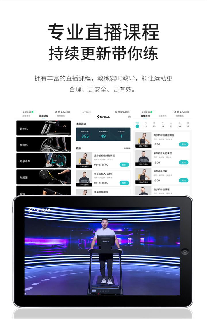 舒華X5 Pro豪華智能跑步機采用全新舒華跑步機系統,搭載21.5寸大屏,內置九種運動(dòng)程序,包括場(chǎng)景跑、在線(xiàn)約跑和一鍵體育考試等內容,亦有教練在線(xiàn)科學(xué)指導和比賽互動(dòng),可在線(xiàn)升級,歷經(jīng)耐久性測試,讓您使用更安全,雙跑臺設計,全減震系統,核心動(dòng)力采用F級耐高溫馬達,5.0HP峰值馬力,提供源源動(dòng)力,讓您享受每一次暢跑體驗。