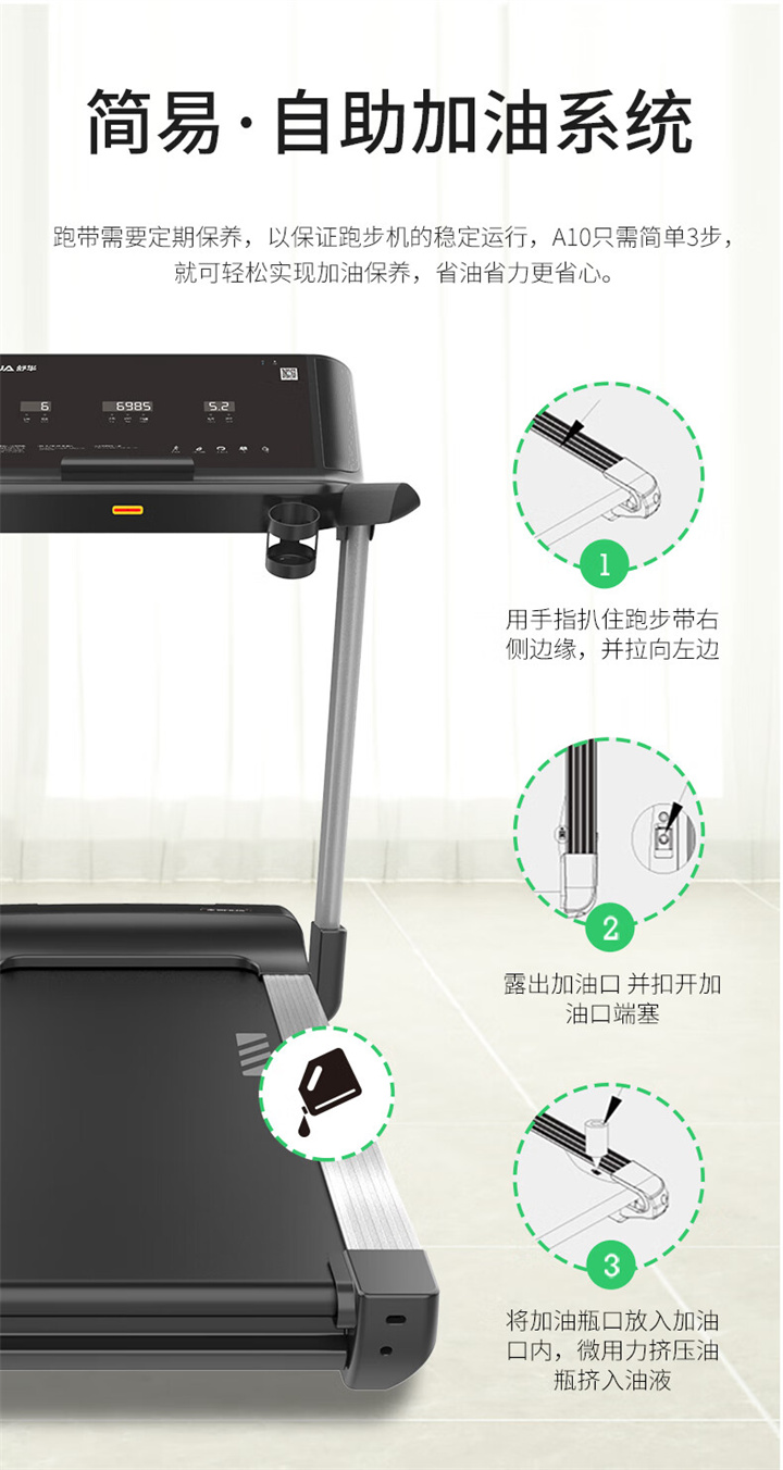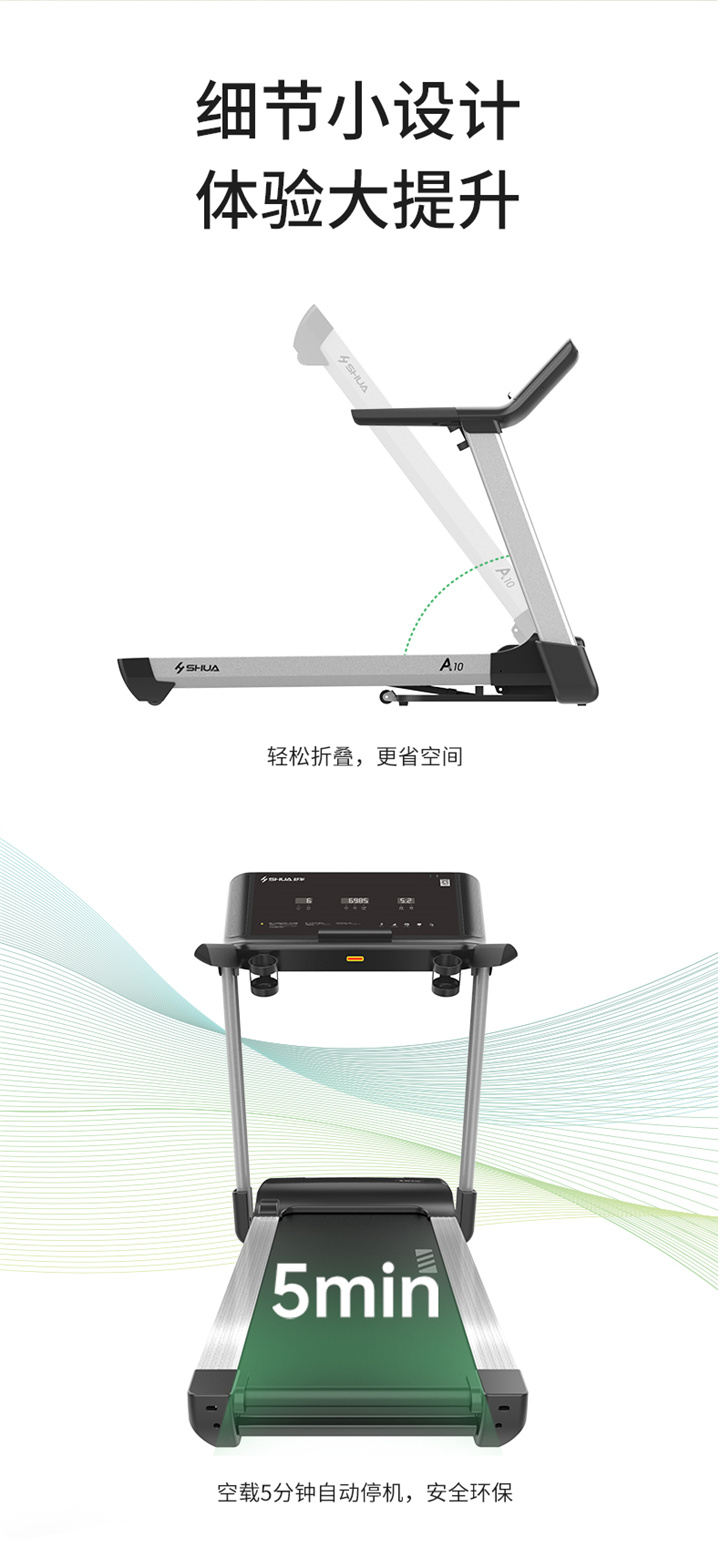 舒華家用跑步機SH-T5100持續馬力達1.25HP,具有500×1350mm的跑臺,運用無(wú)線(xiàn)心率接收模塊監測心率,運用6位硅膠減震設計,最大承重是126kg,可以滿(mǎn)足大多數家庭的使用。